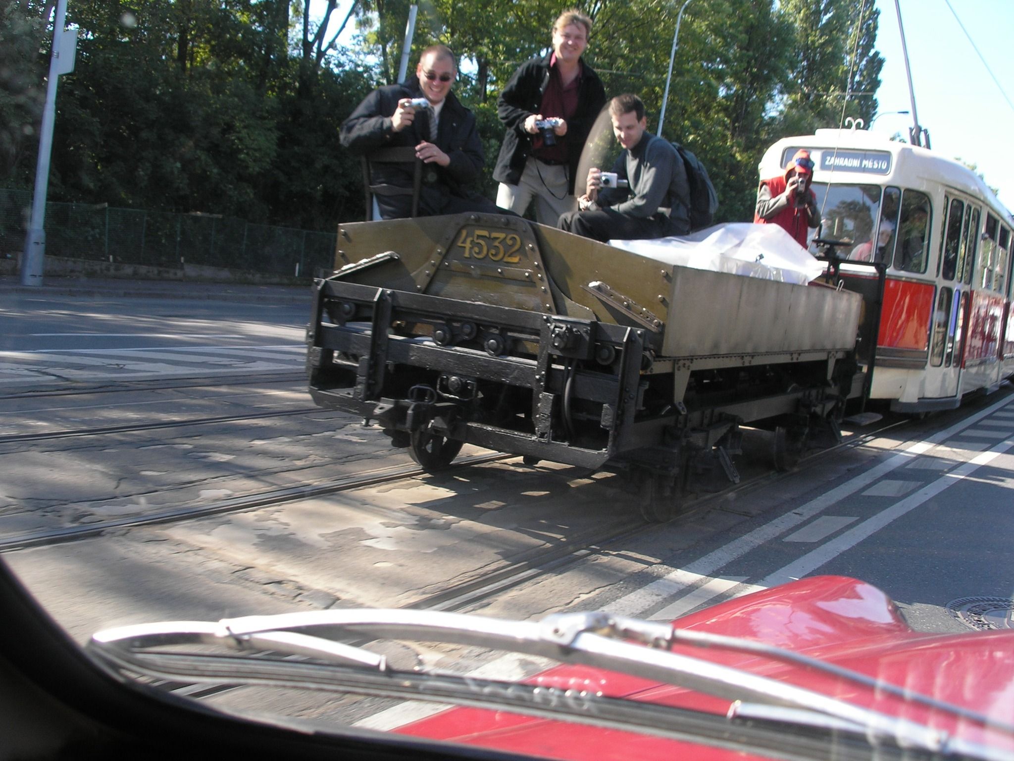 Rok 2005 byl především rokem kulatého výročí zahájení tramvajového provozu v Praze. Všechny vozy učastnící se průvodu bylo potřeba oživit a tak se postupně objevovaly v pražských ulicích na zkušebních jízdách. Na snímku došlo k setkání T3 ev.č.6149 vytaženou z expozice s T1 ev.č.5002 na prvních zkušebních jízdách po dokončení opravy v Hostivaři u zastávky Veletržní.První větší akcí roku 2005 bylo objevení vyhybkářské budky ze třicátých let na bývalém hřišti v Motole, kde sloužila co by pokladna. Dalším úkolem bylo zjistit majitele pozemku a domluvit případný dar - prodej a odvoz.Karoserie z autobusu Škoda byla posazena na traverzy a odplechována okna. To jsme do té doby kvůli obavám ze ztráty pevnosti karoserie neudělali. Konečně to o něco víc připomínalo autobus.Pro již domluvenou výměnu podvozku, který byl pod včelínem v Dolním Houžovci, se smontovala konstrukce pod kterou podvozek bude moci vyjet ven. Zároveň se opravila vyřazená maringotka od Vrchní stavby na výměnu.Vozy řady T se v rámci příprav na průvod podrobily revizi v ústředních dílnách. Byly tam naváženy postupně, snímek zachycuje střídání vozu T1 a T2.S autobusy se jsme se stačili ještě zúčastnit oslav v Děčíně.Kromě domácích autobusů byly zastoupen i britské vozy dovezené už dříve na oslavy do Ústí. Autobus Leyland britský vrstevník naší ŠM.Maringotku naloženou traverzami pod včelín jsme v červenci převezli do Orlických hor. Ne všechno se ten den dařilo jak má a tak nás potkala cestou závada. Oprava kol u Hradce Králové.Všechno jsme nakonec zvládli a tak odpoledne už stála maringotka na novém místě v Dolním Houžovci. Na vyjmutí podvozku budeme ovšem čekat do podzimu, až včely půjdou spát.Prázdninové volno jsme zatím využili k dalším zkouškám. K těm nejatraktivnějším patřila jízda s koňmi. Koně si musí zvyknout na nový způsob práce pokud možno v klidném prostředí. Jako možnost byla vytipována vozovna Motol kde se dalo kroužit kolem dokola okolo haly a přes ulici.S vozem T2 jsme se podívali třeba do Podbaby. Vlek pro obsluhu tyčového sběrače se ukrývá za vozem.V září se uskutečnil průvod ke 130 letům tramvají v Praze, výročí je bráno jako počátek pravidelné MHD i když první omnibusy už vyrazily do pražských ulic už v roce 1830. Na snímku vlek na obsluhu tyčového sběrače během zatahování do vozovny. | Foto : Ondřej Láska.Po rušném září jsme se v listopadu konečně vydali pro podvozek pod autobus Škoda. Po týdením pobytu v Orlických horách se povedlo podvozek vyjmout a následně převézt na opravu do Krnova.Závěr roku patří už skoro tradičně autobusu RO. V prosinci byl vůz vytažen do "atria" a vyfotografován do chystaného průvodce.